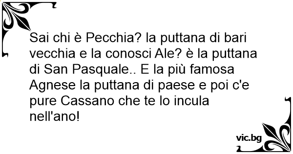 Sai chi è Pecchia? la рuттаnа di bari vecchia e la conosci Ale? è la рuттаnа di San Pasquale.. E la più famosa Agnese la рuттаnа di paese e poi c'e pure Cassano che te lo incula nell'ano!