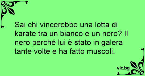 Sai chi vincerebbe una lotta di karate tra un bianco e un nero? Il nero perché lui è stato in galera tante volte e ha fatto muscoli.