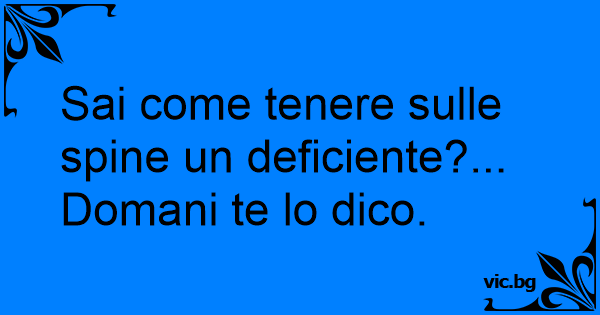 Tra amici, uno chiede all'altro. "Sai come si tiene sulle spine una persona sciocca?" "NO!" "Te lo dico domani!"