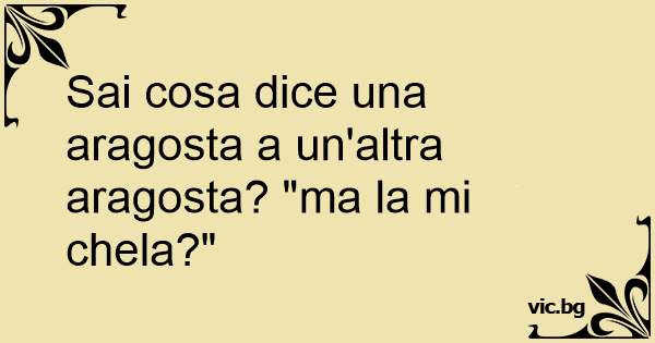 Sai cosa dice una aragosta a un'altra aragosta? "ma la mi chela?"
