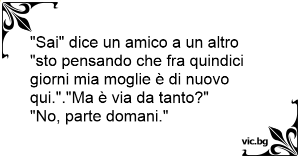 "Sai" dice un amico a un altro "sto pensando che fra quindici giorni mia moglie è di nuovo qui."."Ma è via da tanto?"