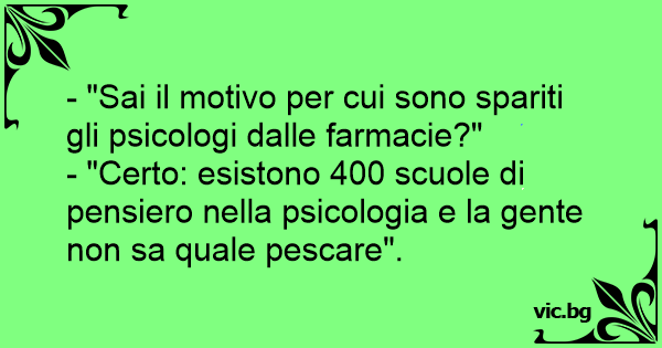 - "Sai il motivo per cui sono spariti gli psicologi dalle farmacie?"