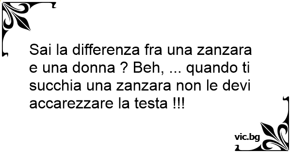 Sai la differenza fra una zanzara e una donna ? Beh, ... quando ti succhia una zanzara non le devi accarezzare la testa !!!
