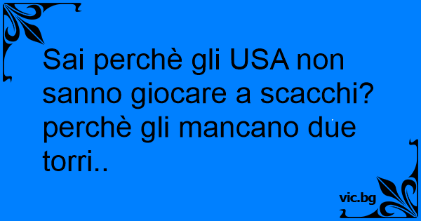 Sai perchè gli USA non sanno giocare a scacchi? perchè gli mancano due torri..