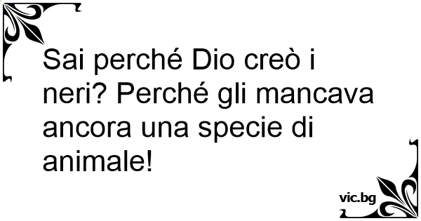 Sai perché Dio creò i neri? Perché gli mancava ancora una specie di animale!