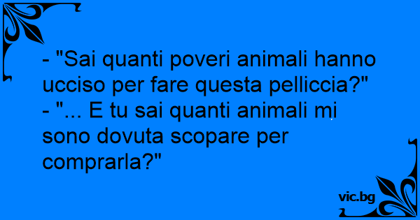 - "Sai quanti poveri animali hanno ucciso per fare questa pelliccia?"