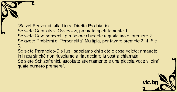 Se siete Schizofrenici, ascoltate attentamente e una piccola voce vi dira’ quale numero premere”.