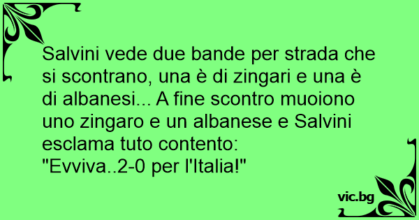 Salvini vede due bande per strada che si scontrano, una è di zingari e una è di albanesi... A fine scontro muoiono uno zingaro e un albanese e Salvini esclama tuto contento: