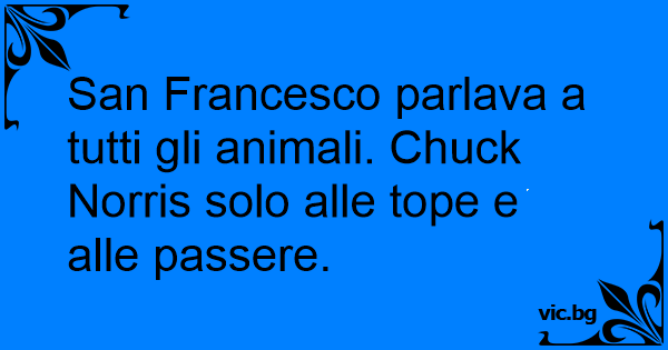 San Francesco parlava a tutti gli animali. Chuck Norris solo alle tope e alle passere.