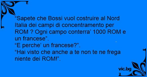 “Sapete che Bossi vuol costruire al Nord Italia dei campi di concentramento per ROM ? Ogni campo conterra’ 1000 ROM e un francese”.