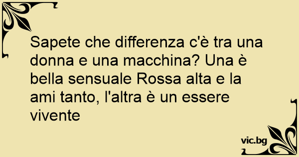 Sapete che differenza c'è tra una donna e una macchina? Una è bella sensuale Rossa alta e la ami tanto, l'altra è un essere vivente