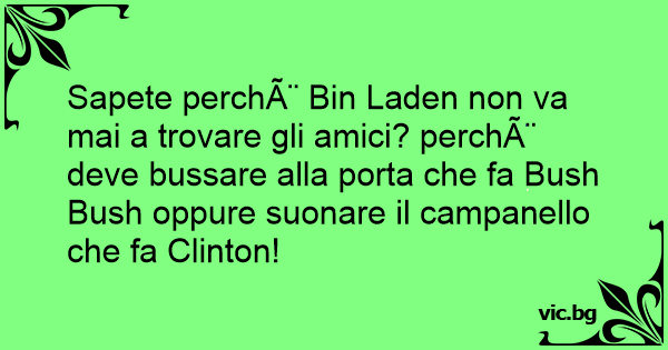 Sapete perchè Bin Laden non va mai a trovare gli amici? perchè deve bussare alla porta che fa Bush Bush oppure suonare il campanello che fa Clinton!