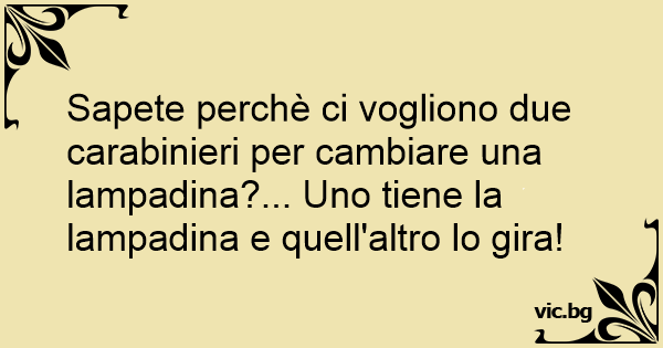 Sapete perchè ci vogliono due carabinieri per cambiare una lampadina?... Uno tiene la lampadina e quell'altro lo gira!