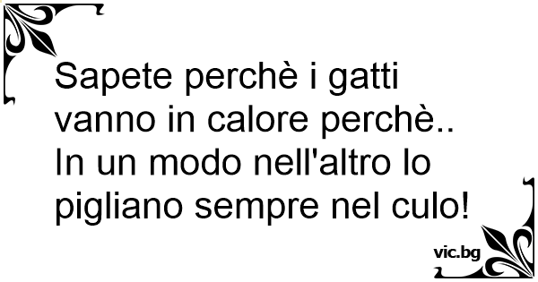 Sapete perchè i gatti vanno in calore perchè.. In un modo nell'altro lo pigliano sempre nel сulо!