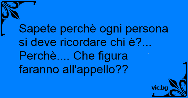 Sapete perchè ogni persona si deve ricordare chi è?... Perchè.... Che figura faranno all'appello??