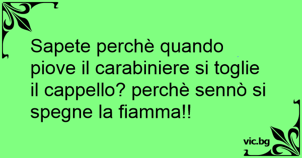 Sapete perchè quando piove il carabiniere si toglie il cappello? perchè sennò si spegne la fiamma!!