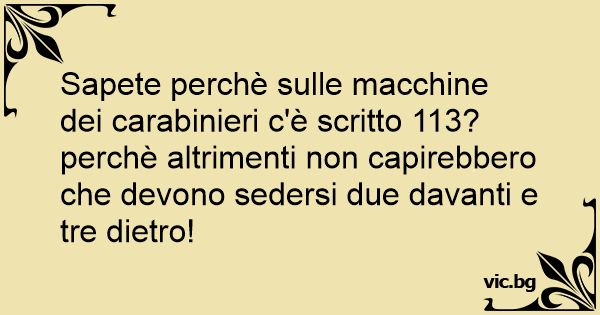 Sapete perchè sulle macchine dei carabinieri c'è scritto 113? perchè altrimenti non capirebbero che devono sedersi due davanti e tre dietro!