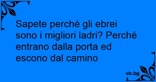 Sapete perché gli ebrei sono i migliori ladri? Perché entrano dalla porta ed escono dal camino