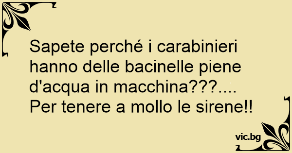 Sapete perché i carabinieri hanno delle bacinelle piene d'acqua in macchina???.... Per tenere a mollo le sirene!!