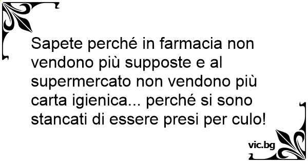 Sapete perché in farmacia non vendono più supposte e al supermercato non vendono più carta igienica... perché si sono stancati di essere presi per сulо!