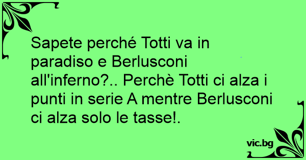 Sapete perché Totti va in paradiso e Berlusconi all'inferno?.. Perchè Totti ci alza i punti in serie A mentre Berlusconi ci alza solo le tasse!.