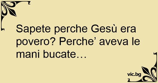 Sapete perche Gesù era povero? Perche’ aveva le mani bucate…