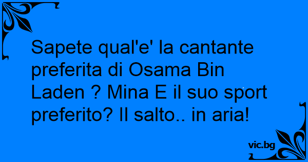 Sapete qual'e' la cantante preferita di Osama Bin Laden ? Mina E il suo sport preferito? Il salto.. in aria!