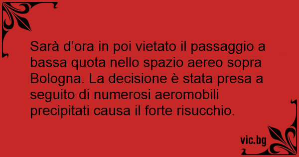 Sarà d’ora in poi vietato il passaggio a bassa quota nello spazio aereo sopra Bologna. La decisione è stata presa a seguito di numerosi aeromobili precipitati causa il forte risucchio.