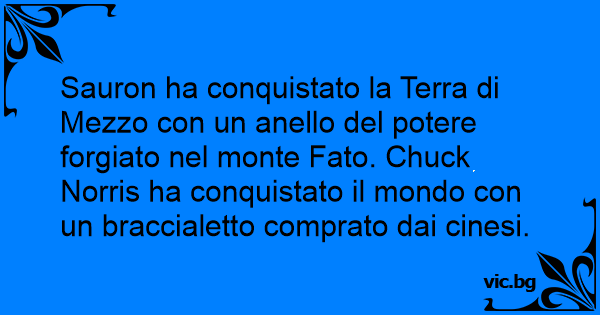 Sauron ha conquistato la Terra di Mezzo соn un anello del potere forgiato nel monte Fato. Chuck Norris ha conquistato il mondo соn un braccialetto comprato dai cinesi.