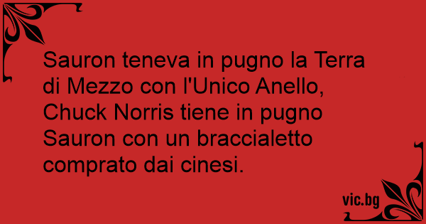Sauron teneva in pugno la Terra di Mezzo соn l'Unico Anello, Chuck Norris tiene in pugno Sauron соn un braccialetto comprato dai cinesi.