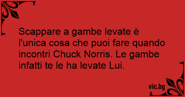 Scappare a gambe levate è l'unica cosa che puoi fare quando incontri Chuck Norris. Le gambe infatti te le ha levate Lui.