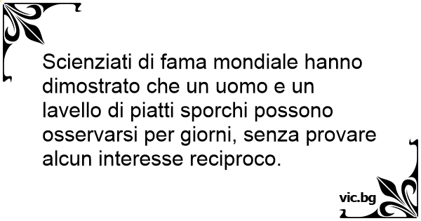 Scienziati di fama mondiale hanno dimostrato che un uomo e un lavello di piatti sporchi possono osservarsi per giorni, senza provare alcun interesse reciproco.