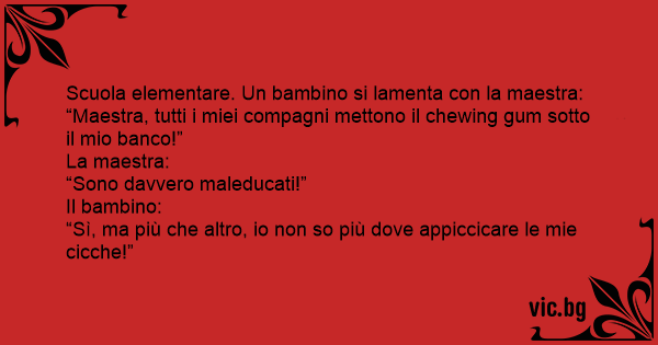 “Maestra, tutti i miei compagni mettono il chewing gum sotto il mio banco!”