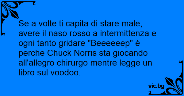Se a volte ti capita di stare male, avere il naso rosso a intermittenza e ogni tanto gridare "Beeeeeep" è perche Chuck Norris sta giocando all'allegro chirurgo mentre legge un libro sul voodoo.