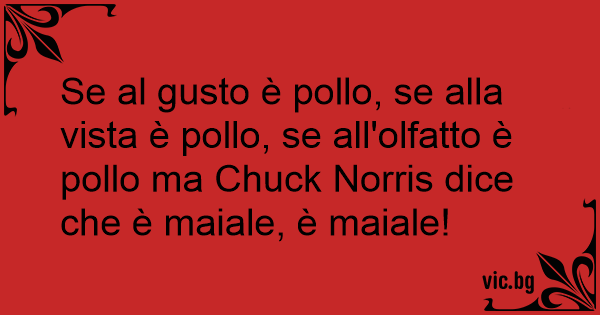 Se al gusto è pollo, se alla vista è pollo, se all'olfatto è pollo ma Chuck Norris dice che è maiale, è maiale!