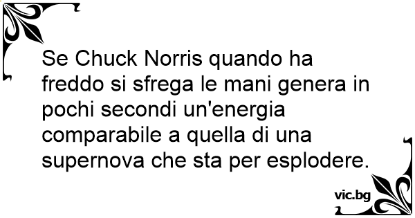 Se Chuck Norris quando ha freddo si sfrega le mani genera in pochi secondi un'energia comparabile a quella di una supernova che sta per esplodere.