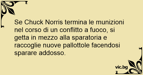 Se Chuck Norris termina le munizioni nel corso di un conflitto a fuoco, si getta in mezzo alla sparatoria e raccoglie nuove pallottole facendosi sparare addosso.
