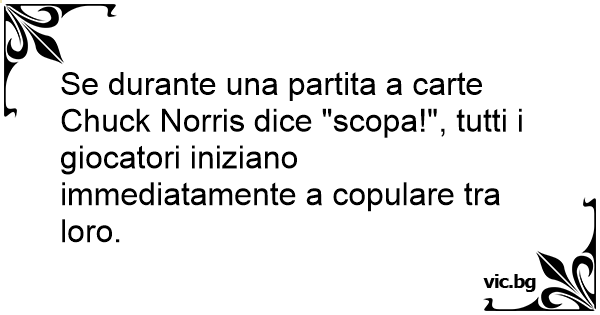 Se durante una partita a carte Chuck Norris dice "scopa!", tutti i giocatori iniziano immediatamente a copulare tra loro.