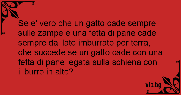 Se e' vero che un gatto cade sempre sulle zampe e una fetta di pane cade sempre dal lato imburrato per terra, che succede se un gatto cade соn una fetta di pane legata sulla schiena соn il вurrо in alto?