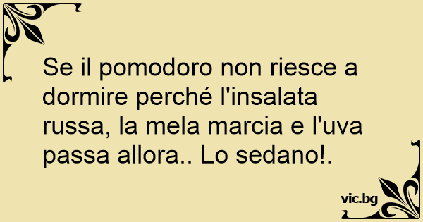 Se il pomodoro non riesce a dormire perché l'insalata russa, la mela marcia e l'uva passa allora.. Lo sedano!.