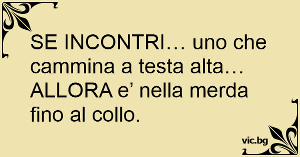 SE INCONTRI… uno che cammina a testa alta… ALLORA e’ nella меrdа fino al collo.
