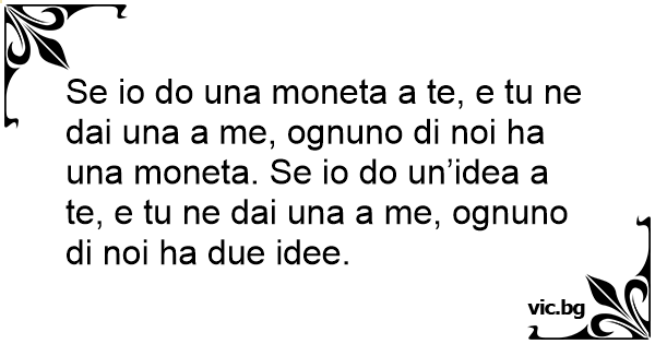 Se io do una moneta a te, e tu ne dai una a me, ognuno di noi ha una moneta. Se io do un’idea a te, e tu ne dai una a me, ognuno di noi ha due idee.