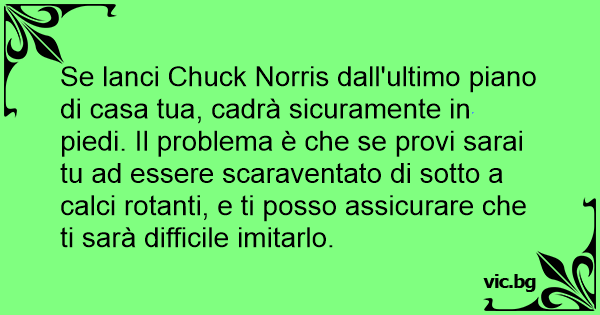 Se lanci Chuck Norris dall'ultimo piano di casa tua, cadrà sicuramente in piedi. Il problema è che se provi sarai tu ad essere scaraventato di sotto a calci rotanti, e ti posso assicurare che ti sarà difficile imitarlo.