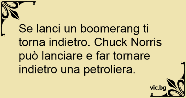 Se lanci un boomerang ti torna indietro. Chuck Norris può lanciare e far tornare indietro una petroliera.