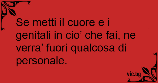 Se metti il cuore e i genitali in cio’ che fai, ne verra’ fuori qualcosa di personale.