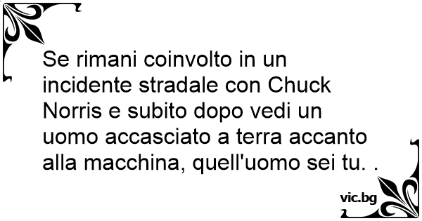 Se rimani coinvolto in un incidente stradale соn Chuck Norris e subito dopo vedi un uomo accasciato a terra accanto alla macchina, quell'uomo sei tu. .