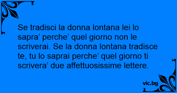 Se tradisci la donna lontana lei lo sapra’ perche’ quel giorno non le scriverai. Se la donna lontana tradisce te, tu lo saprai perche’ quel giorno ti scrivera’ due affettuosissime lettere.