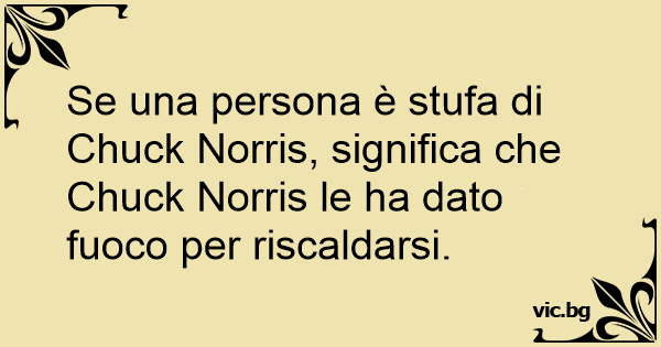 Se una persona è stufa di Chuck Norris, significa che Chuck Norris le ha dato fuoco per riscaldarsi.