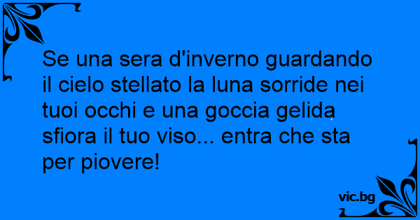Se una sera d'inverno guardando il cielo stellato la luna sorride nei tuoi occhi e una goccia gelida sfiora il tuo viso... entra che sta per piovere!