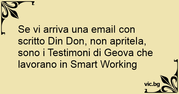 Se vi arriva unа emaiI соn scritto Din Don, non apriteIa, sono i Testimoni di Geova che lavorano in Smart Working